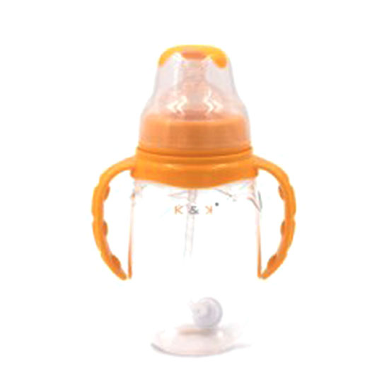 This 240ml feeding bottle is designed in bright orange for an eye-catching look. It is designed with a robust glass housing for durability. This high-quality glass feeding bottle with dual handles is ideal for new-born babies.