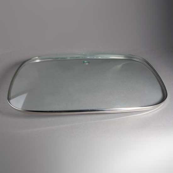 Featured is a glass lid in a rounded square shape with a convex style. The rim is covered with high-grade metal which is finely finished. This lid is ideal for frying pans.