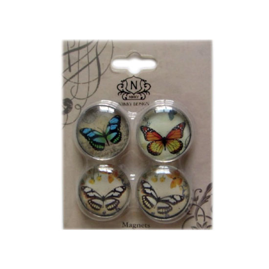 This is a glass magnet that comes in a neat round shape. The romantic butterfly patterns in bright colors add an interesting touch to the look. This glass magnet will surely grab your attention instantly.