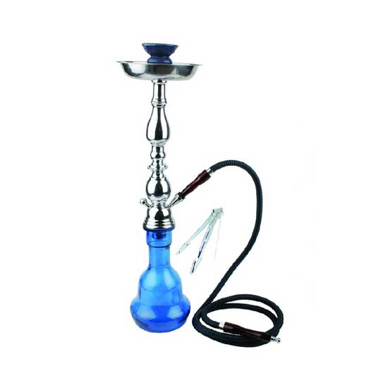 This is a hookah that comes with an elegant and stylish look. It boasts a glass bottle in blue with an iron pipe in silver. This dainty item makes a perfect choice as a gift for smokers.