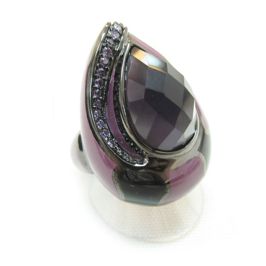 Pictured is a ring coming with a teardrop-shape design. The faceted center stone, in either black or white, is embraced with a lingering strand of sparkling accents. The polished silver band brings a more sophisticated touch.