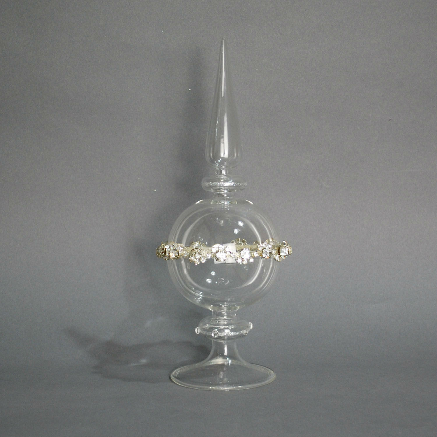 Embellish your table top with this classy and elegant glass finial. It is mouth blown for a unique look and is trimmed with jewel chains. This glass finial flaunts outstanding workmanship and is excellent for using as a gift.