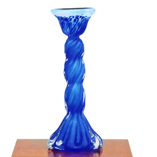 The featured item is a vase made of glass. It comes in a long and narrow shape, with a wide base and opening. It is in bright blue colour with veining.