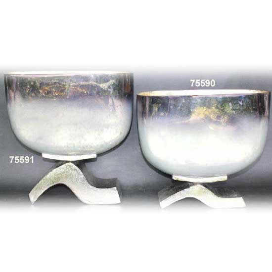 This is a glass vase that comes with an aluminum base for firmness. Featuring a wildlife theme, the vase is decorated with paintings on the upper half. This unique glass vase is available in two sizes.