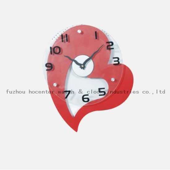 This glass wall clock features a red heart design for an appealing touch. It comes with two curving hands and numeral hour markers. This novel wall clock adds spice to your plain wall immediately.