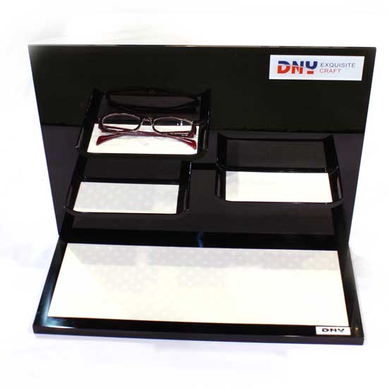 Highlighted is an exquisite display unit for eyeglasses. The quality acrylic construction offers contemporary elegance. This handsome glasses display makes a wonderful choice for applications in department stores or exhibitions.