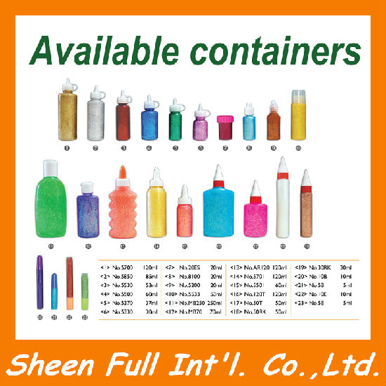- Glitter glue-volume/bottles: 37ml, 53ml, 60ml, 85ml and 120ml.