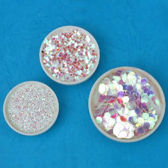 These are glitter powders which are available in various matallic colours. The glitters are of square shaped or hexagonal shaped.