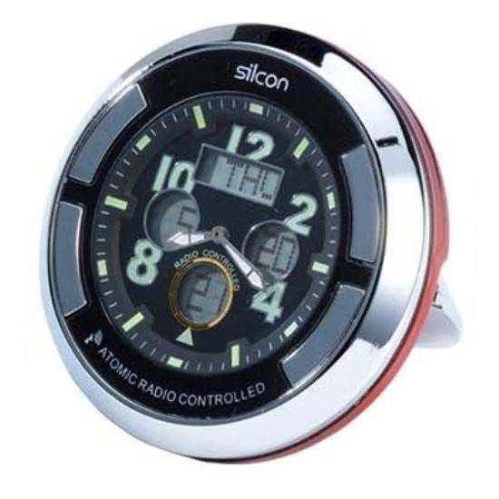 This handsome clock comes with a silvery bezel and a black dial. It features radio-controlled function that always displays the exact local time. It is accurate as it gets updated with time information over-the-air by an atomic clock. This timepiece is built with precision and style.