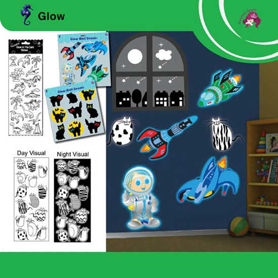 This series of glow in the dark stickers are ideal for use in decorating children's room. The special glowing design delights kids. These beautiful stickers can also be reused for users' convenience.