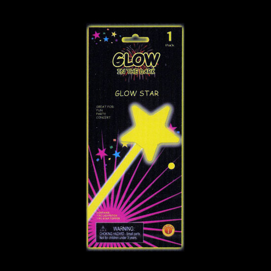 This glowing star wand consists of a yellow light stick and a topper in the shape of a star. The glowing star wand emits bright light in the dark. It is best for use at parties or concerts.