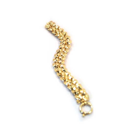 This is a refined gold bracelet that shimmers with a high-gloss finish. It is finely crafted with exquisite details. The ergonomic design makes this bracelet fit comfortably on your wrist.