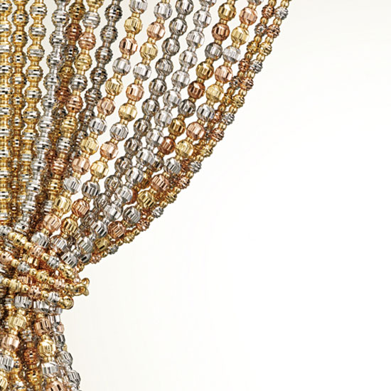 Pictured are beaded chains crafted with quality gold. The chains are finely polished to give dazzling luster. They can be worn on their own or be used as chains for jewelry designs.