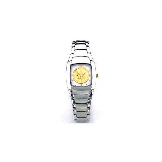 24K maple leaf gold coin from Canadian mint mounted on the dial.