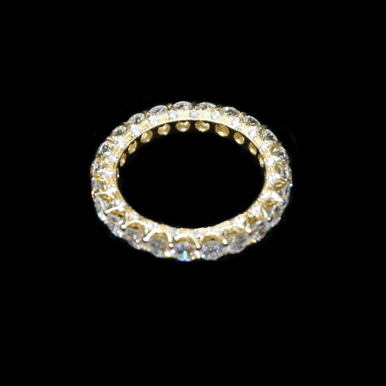 This is a yellow gold ring with a fashionable and modern design. It is crafted with sparkling diamonds for a glamorous touch. This gold diamond ring is an ideal addition to complete your jewelry collection.