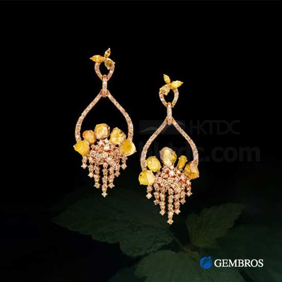 The design of this earrings is inspired by a life of sprouting seeds. It contains the appearance of moving leaves that spotlights spreading yellow/green flat diamonds and the waving of brown diamond.