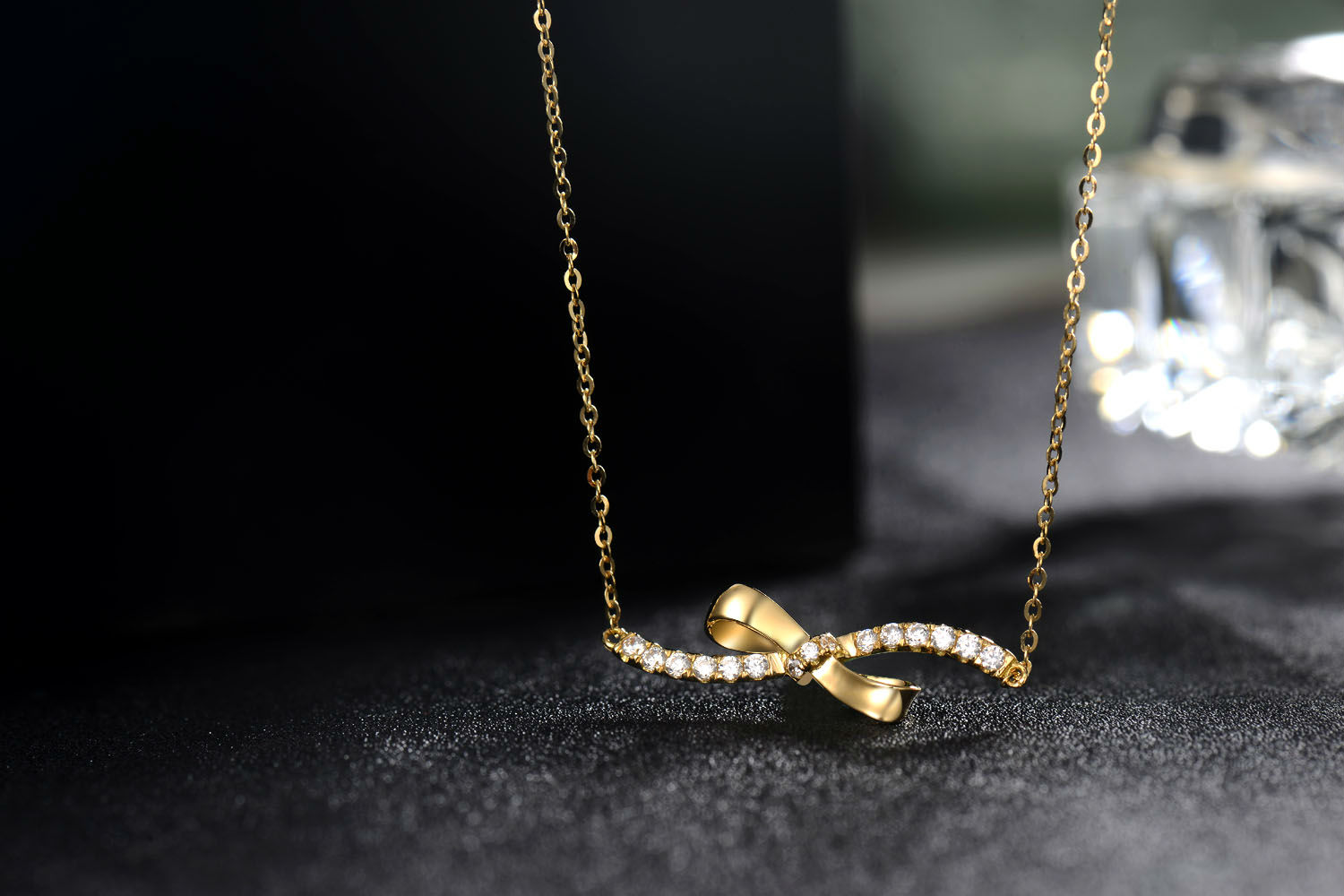 Bow-shaped 18 K GOLD NECKLACE with Diamond