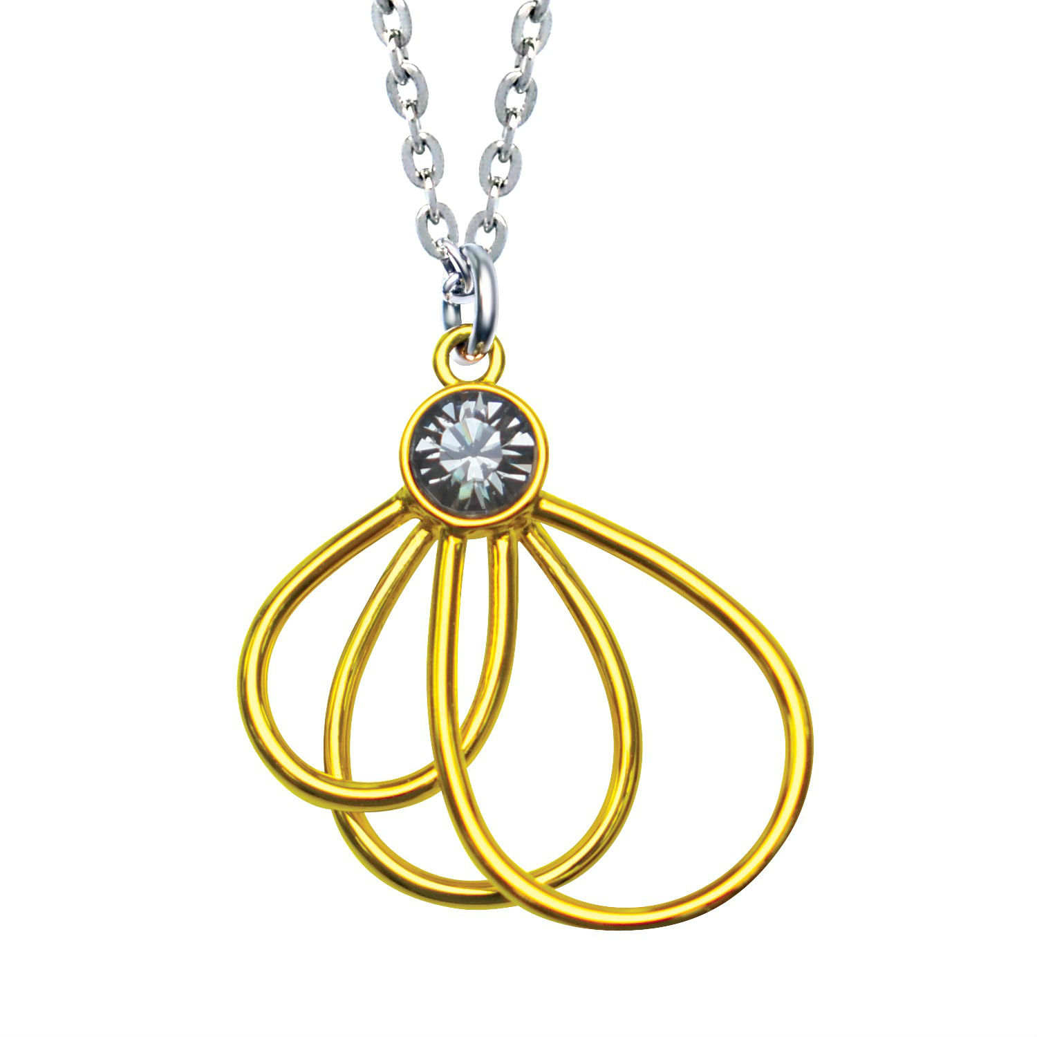 Captivate her heart at once with this classy pendant. Exhibiting a radiating glow at all directions, the gold-plated pendant shines as brilliantly as her smile with a vast, black crystal nestled carefully atop a trio of crosswise teardrop-shaped rings. Pair it up with a sterling silver cable chain to crown her ensemble with a sublime dash of flare and charm.