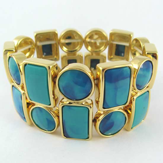 Featured is a classical gold-plated bracelet that is made of zinc alloy material. This excellent bracelet is further embellished by acrylic stones in various shapes, showcasing class and elegance. Simply wear this for a touch of royal beauty.