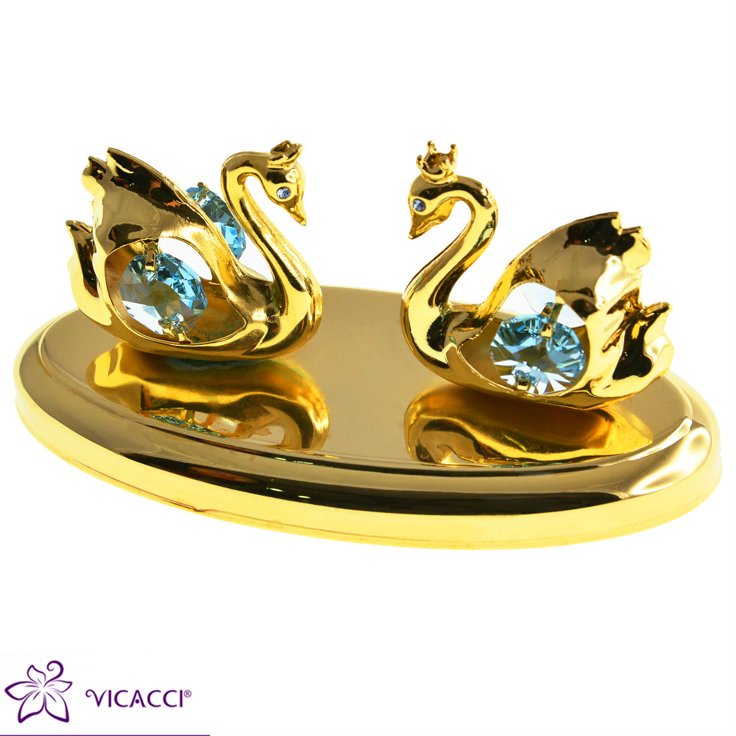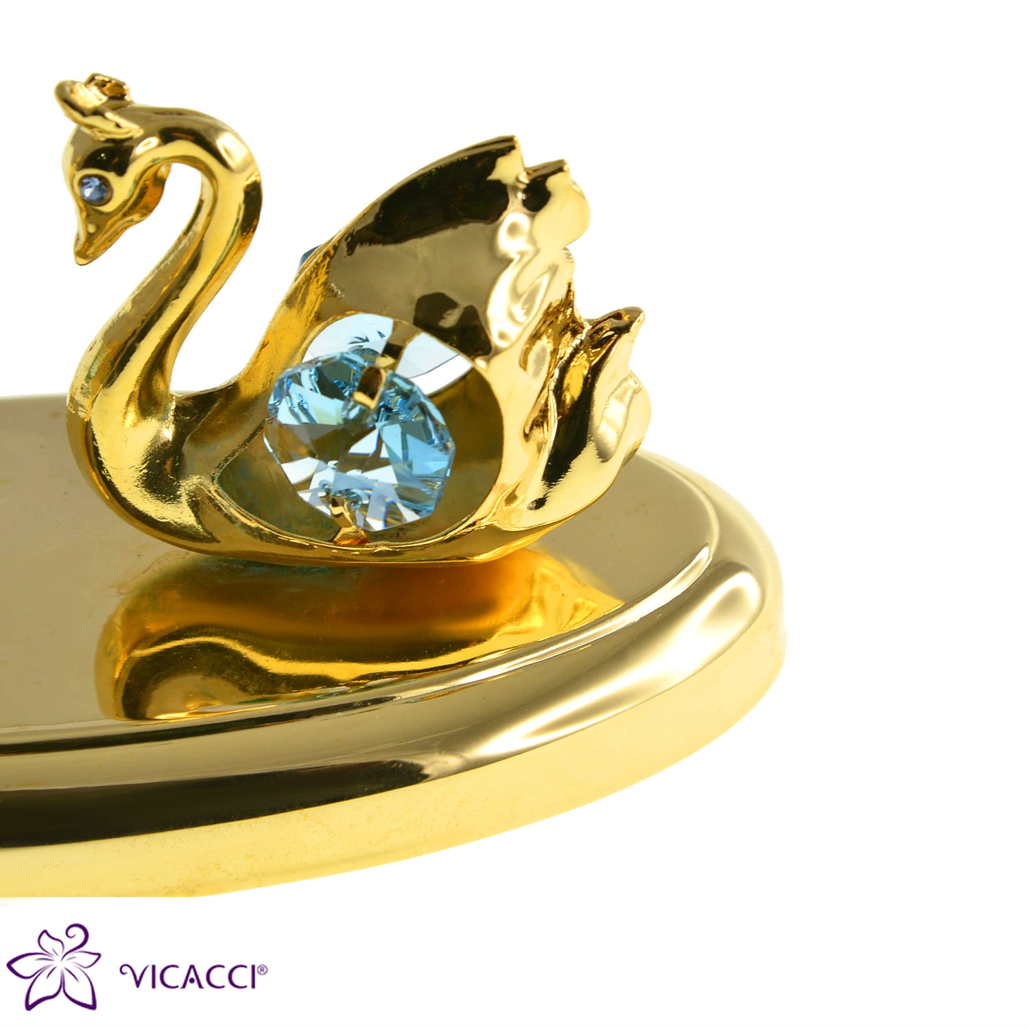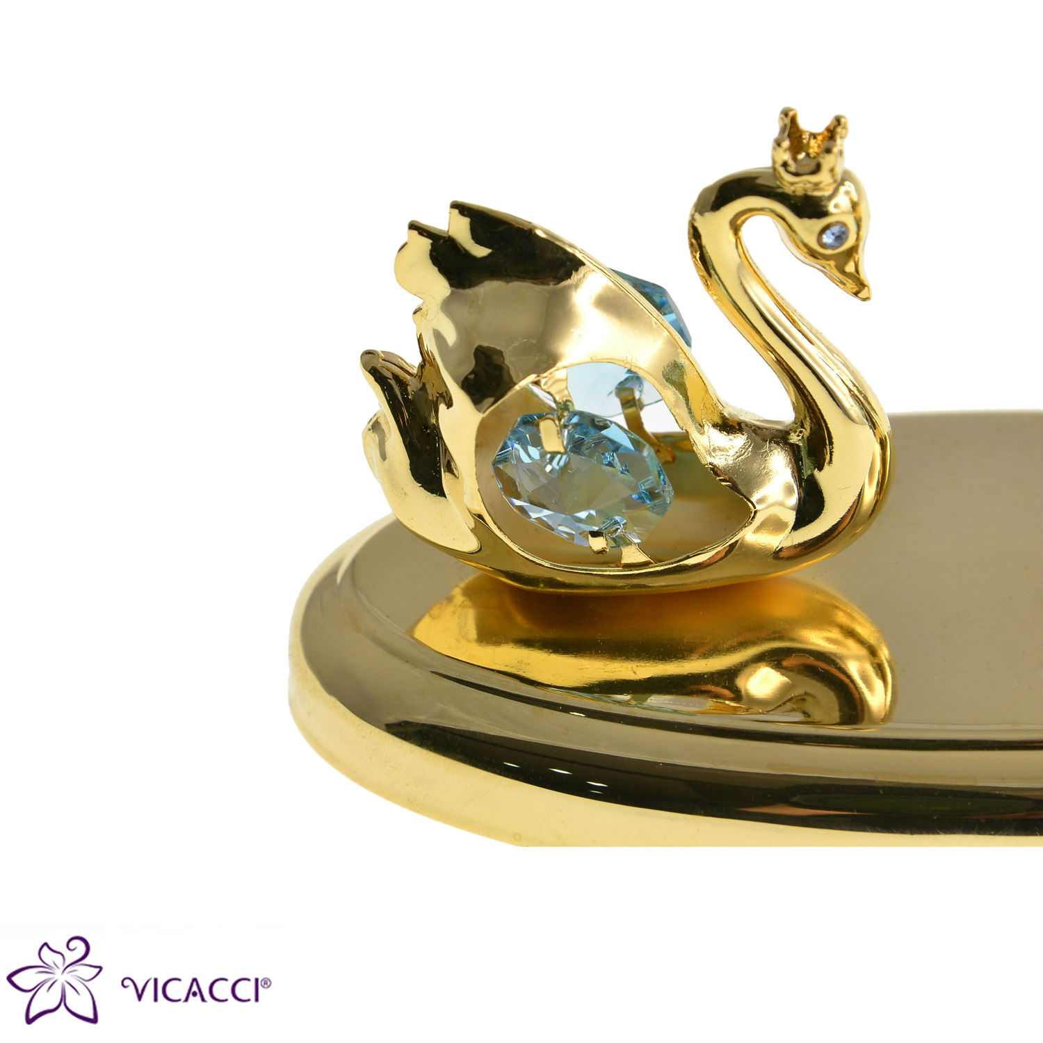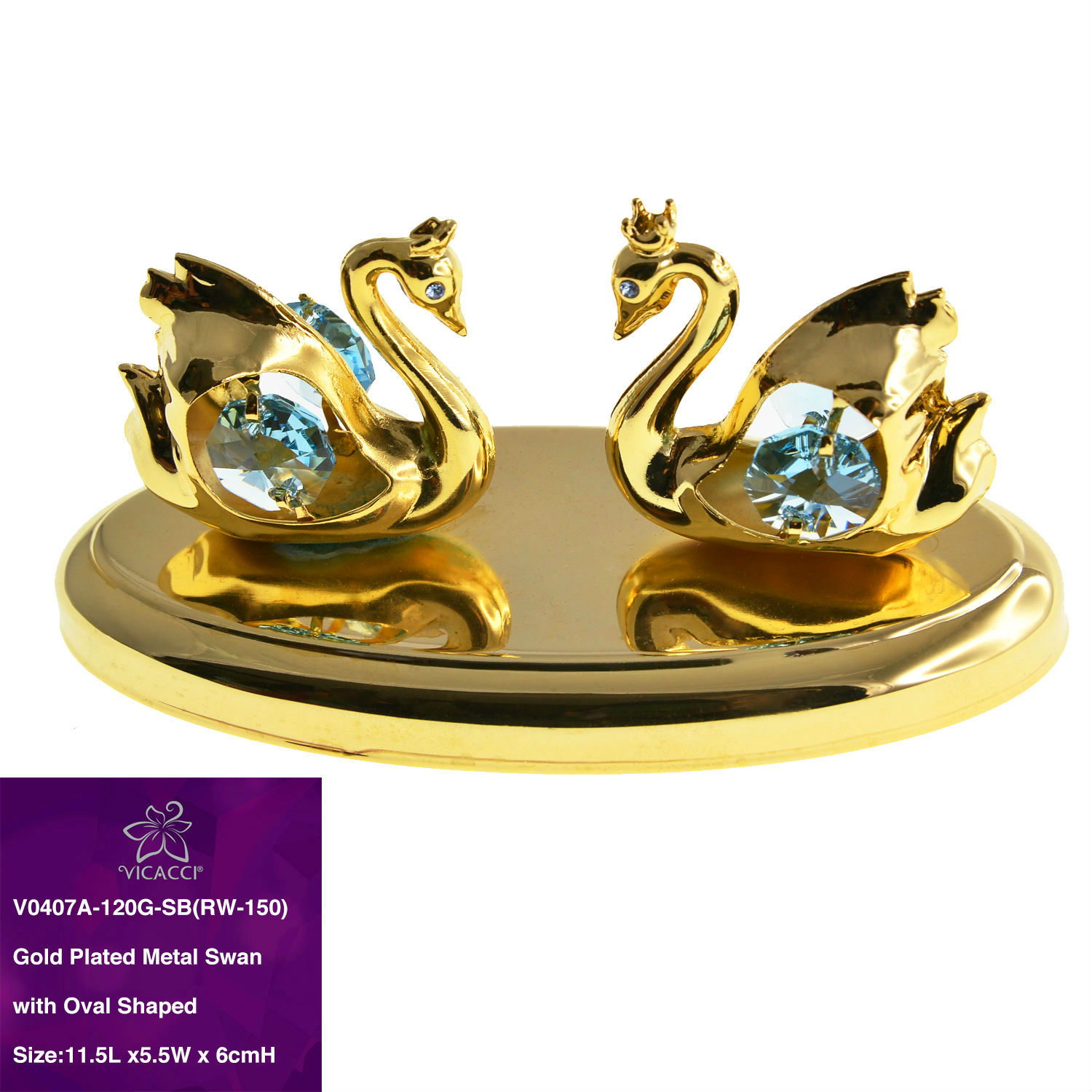 Gold Plated Metal Swan With Oval Shaped