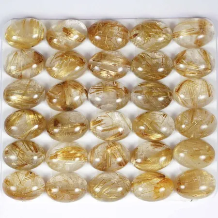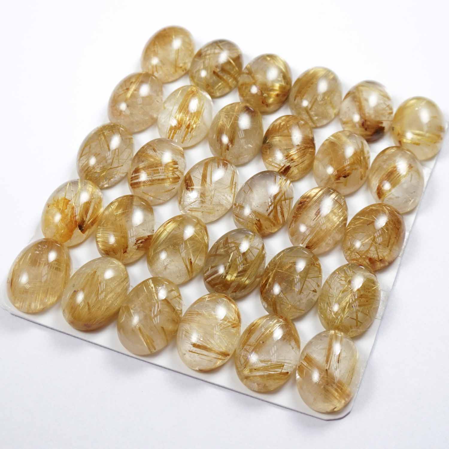 Gold Rutilated Quartz Oval Cabochon Calibrated