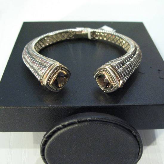 This bangle is made in 925 silver and also 18K gold. It is fashionably designed in a cuff style with glittering diamonds and other semi-precious stones as embellishments. The cuff design is easy for adjusting the width of the bangle and for taking off.