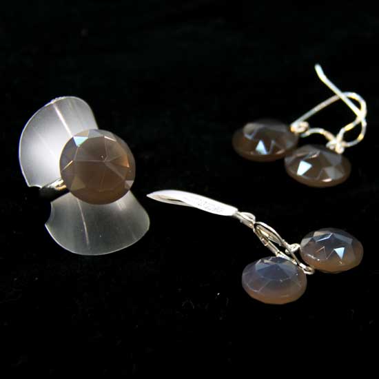 Update your look with the featured jewelry set. It includes two pairs of earrings and a ring. They are decorated with gray agate which features a clear glossy surface. The jewelry pieces are simple but stylish in design.