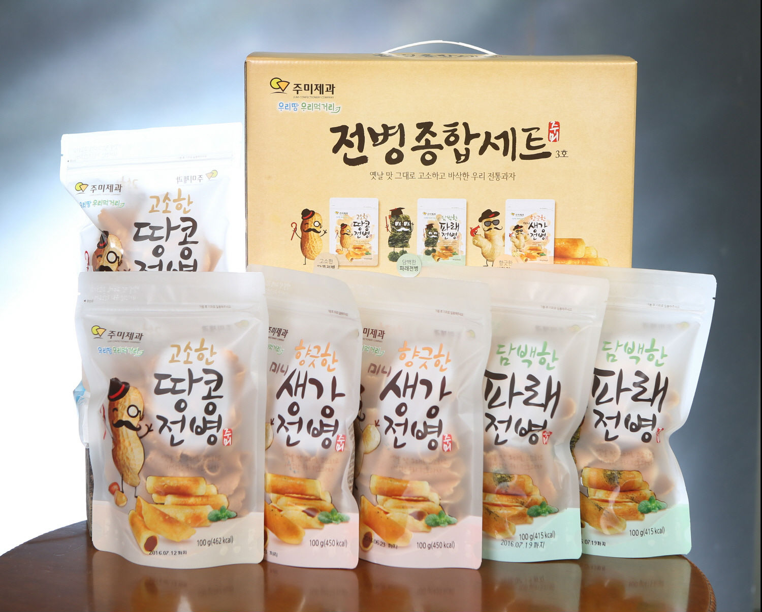 the product for gift containg each two bags of sea lettuce, peanuts, ginger crackers
