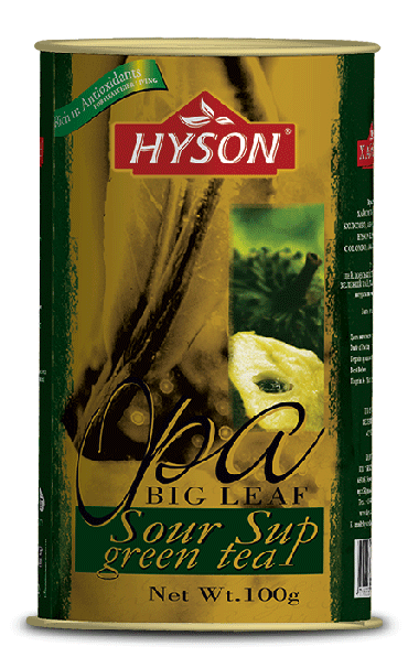Green tea OPA flavored with soursop and blended with edible dried soursop fruit pieces & leaves
