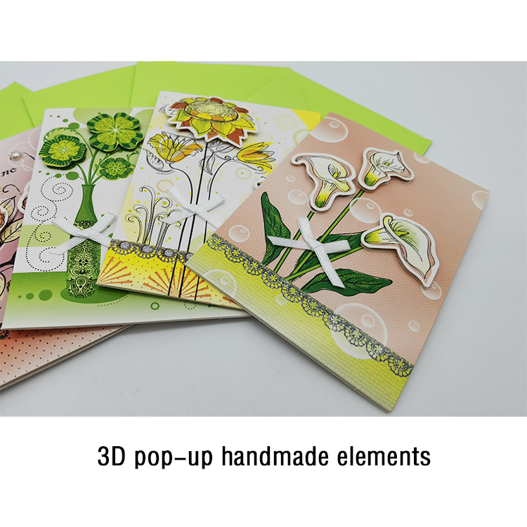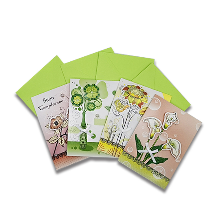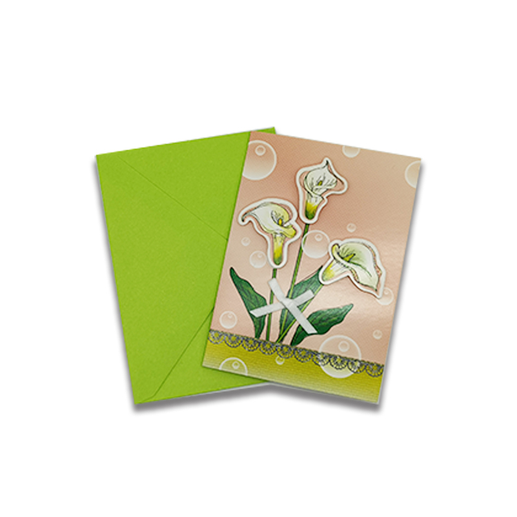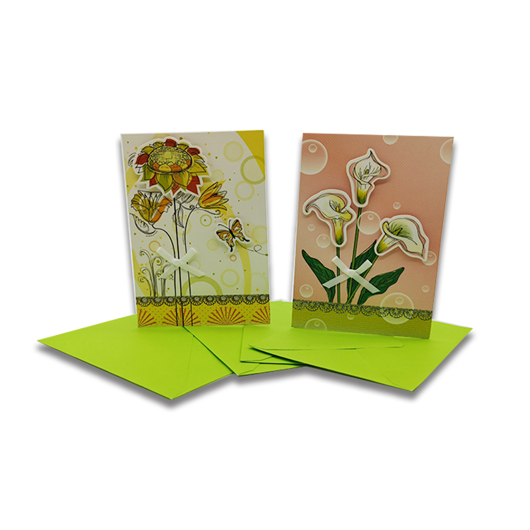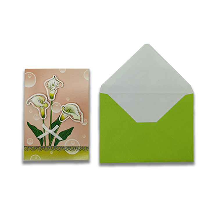 1 card with 1 envelope in a polybag; Or 36/48/60 cards + envelopes per box or customized