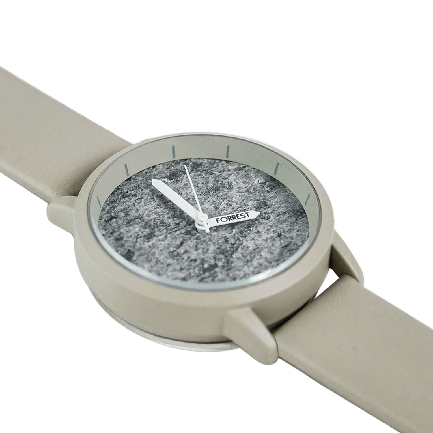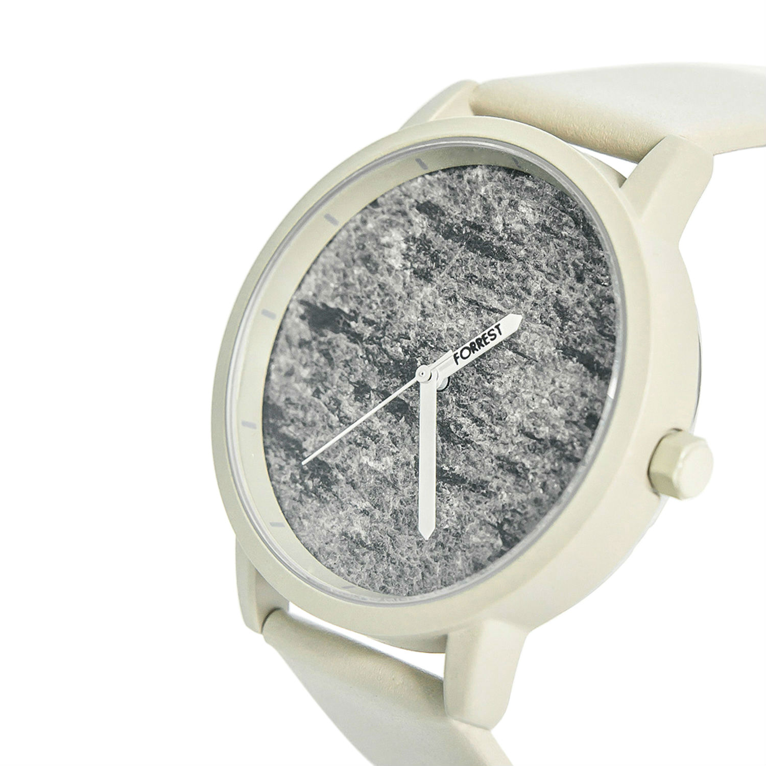 This wristwatch is crafted with a round silver stone dial in a sleek design to flaunt a cool and minimalist style. It operates with three rotating hands to deliver precise performance. This wristwatch is beautifully designed to complement any wardrobe styles.