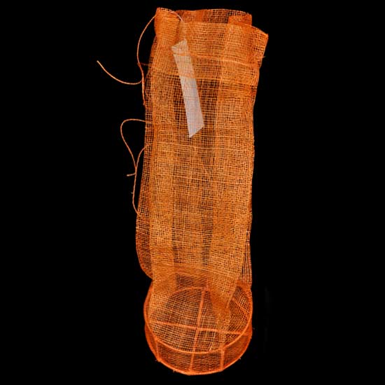 Featured here is a pouch with a round base. It has a mesh body made of abaca, which is highly strong and versatile. The long and open body makes the pouch ideal for holding fruits and vegetables.