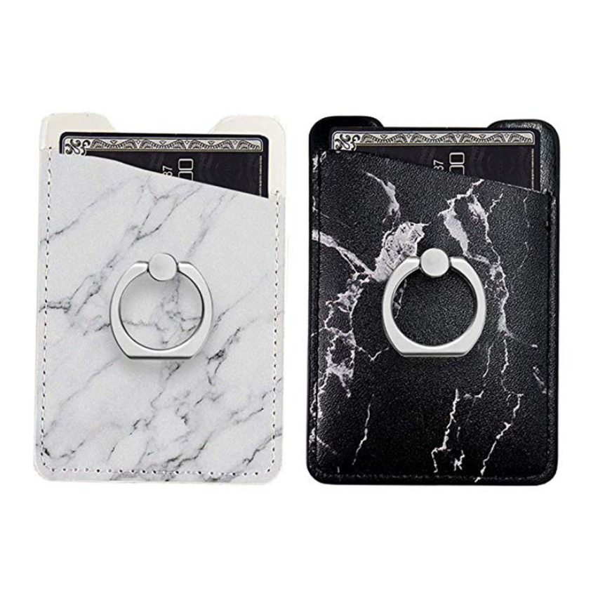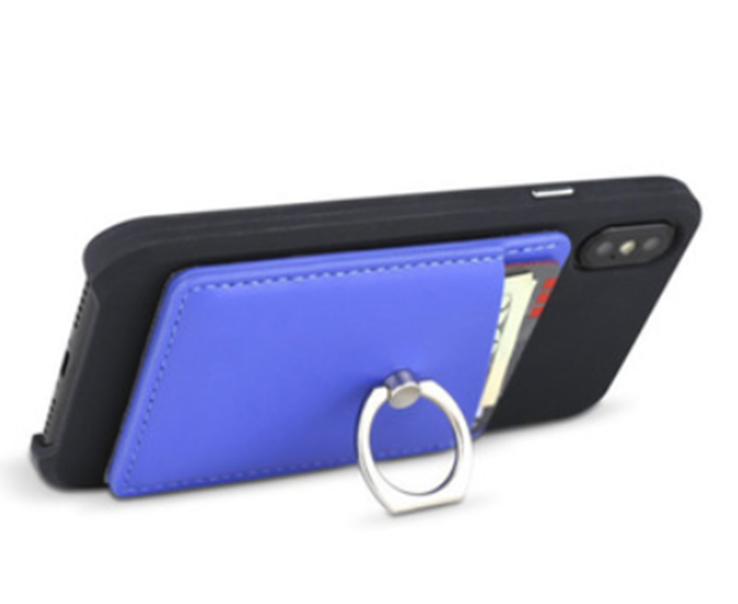 Keywork: promo phone pocket;PU pocket; card holder; custom phone pocket; promo card holder for phone, mobile phone holder with metal finger ring