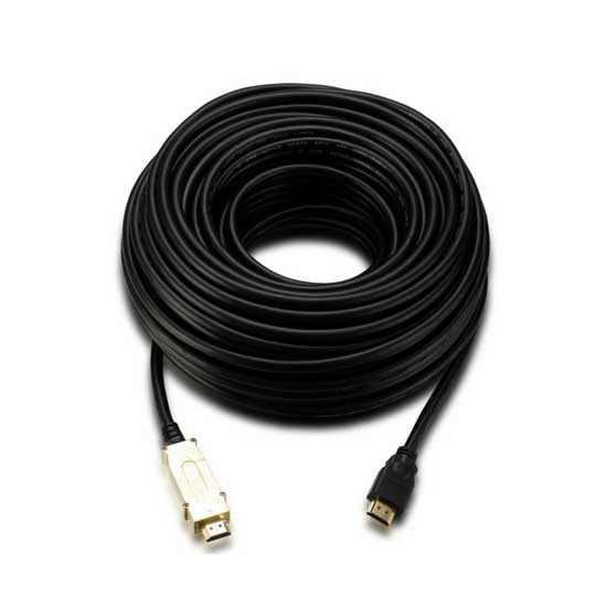 Displayed is a 25-meter long cable designed to extend the length of your HDMI cable. It supports a single link video resolution of 1,080p. This heavy-duty HDMI cable is sure to last for a long time.