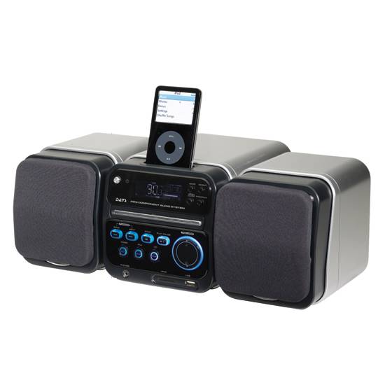 The HI-FI system as shown comes with a docking station designed for MP3 players such as iPOD. It includes a front loading draw type CD door. A small LCD display is included for indication.