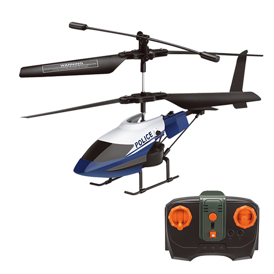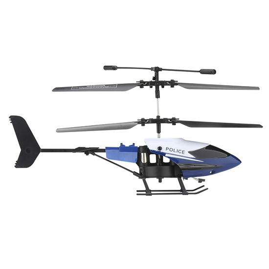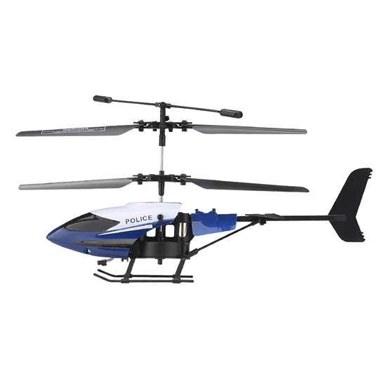 Police I/R Indoor Helicopter; Ascend, descend, forward w/turning left & right; super stable flying fucntion;Requires 4AA for controller NOT INCLUDED & rechargeable 3.7V 75MAH LI-PO battery pack for helicopter INCLUDED