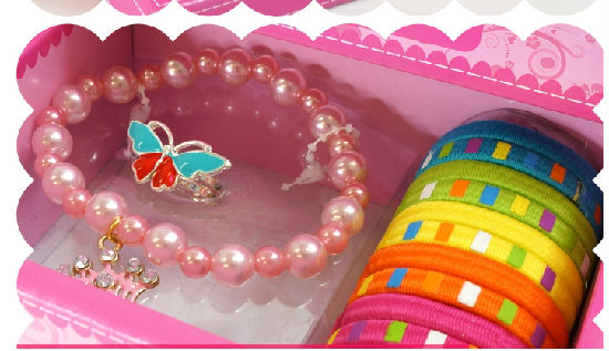 This accessories set is designed for lovely girls. 1 pieces bracelet,1 pieces butterfly ring, 12 pieces elastic, 30 pieces pony-o and 4 pieces hair clips are included in this set accessories. This hair accessories set is a great choice for gift.