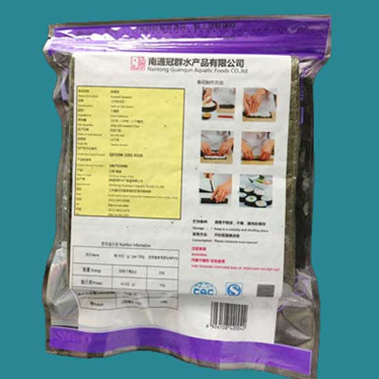This half-cut roasted seaweed is suitable for making sushi. The roasted seaweed is crunchy and salty and has a real depth of flavor. It contains high proportions of iodine, carotene, vitamins A, B and C, as well as significant amounts of calcium and iron.