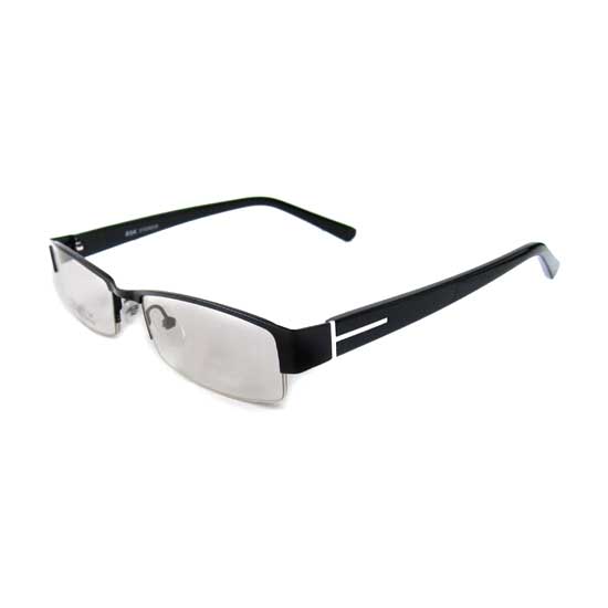 This is a pair of stylish eyeglasses coming with a half-rim design. The frame is cool black in color, with white details added on temples to highlight the design. This subtle design makes these glasses perfect for formal occasions.