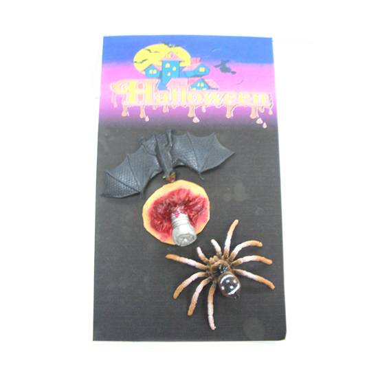 - This halloween set contains a plastic bat, a plastic spider and a plastic wound.