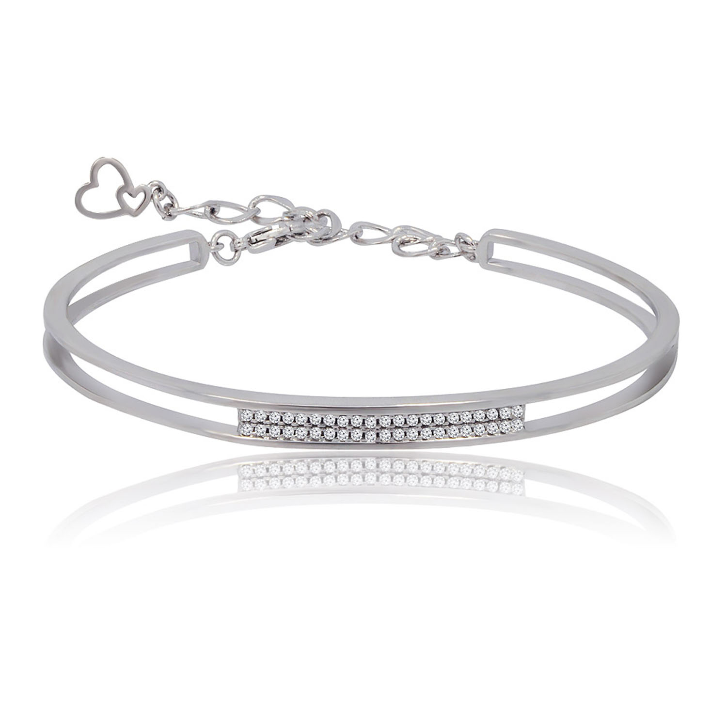 It is perfect for brides who cherish the memories and embrace the classic style of family ancestry. Halo Pave Set Bangle is elegantly sprinkled with pave set CZs.
