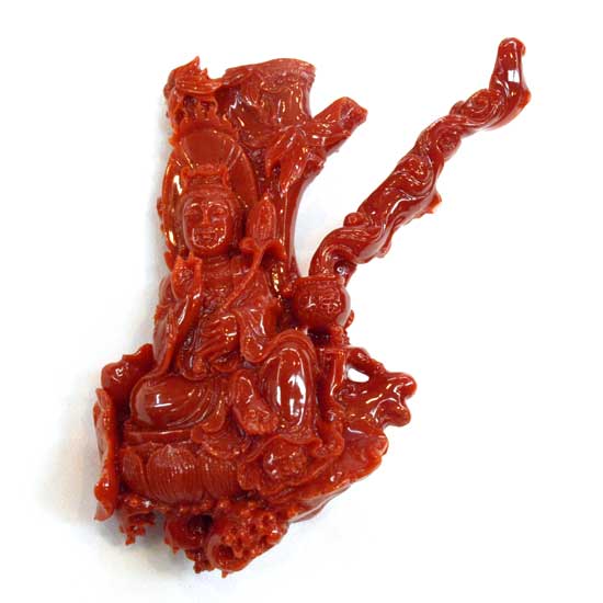 The sophisticated handmade household decoration touts an appearance of a seated Guanyin, delivering a sense of calmness and peace. The top-quality coral promises outstanding shine with brilliant radiance. Meticulously crafted with great details, this handmade coral Guanyin decoration accentuates your home decor with astonishing elegance.