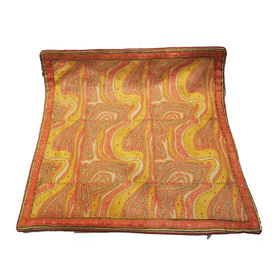 This charming hand embroidered cushion cover is made from shimmering silk of vibrant colors. It features detailed embroidery and beads for decoration. This finely crafted cushion cover is a truly delightful addition to your home decor.