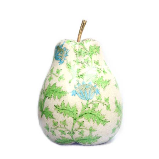 This is an attractive ceramic craft that is especially designed in the shape of a pear. The belly body is finely hand painted with evergreen thistle plants that will appeal to you. This charming pear craft introduces a touch of elegance to your home.