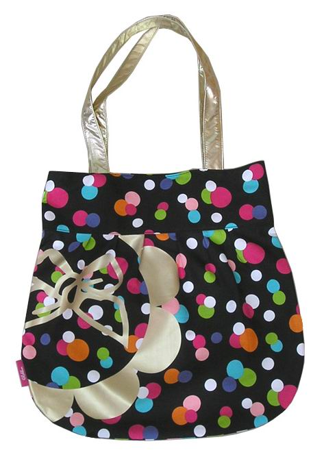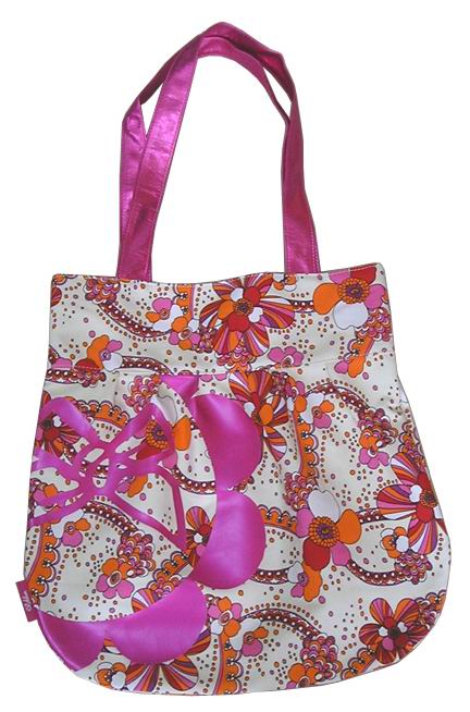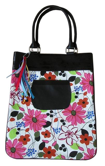 This ladies handbag is made of high quality PU and floral printed fabric.