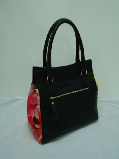 • Solid color front with flower printed side panels.