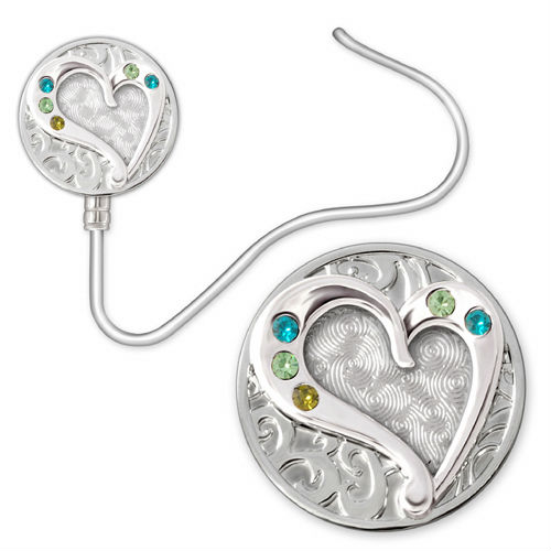 Round shape. Embossed heart design with color stones in blue zircon, peridot and olivinen color
