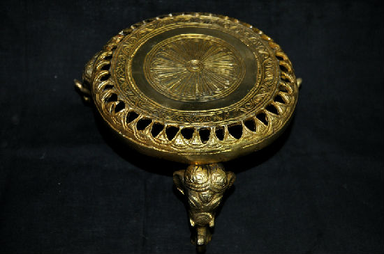 An ethnic and very artistic brass chowki (stool) which can have multiple uses…either to create a warm corner in your lovely home,place deities in your home temple, or simply add bling to your balcony with potted plants.