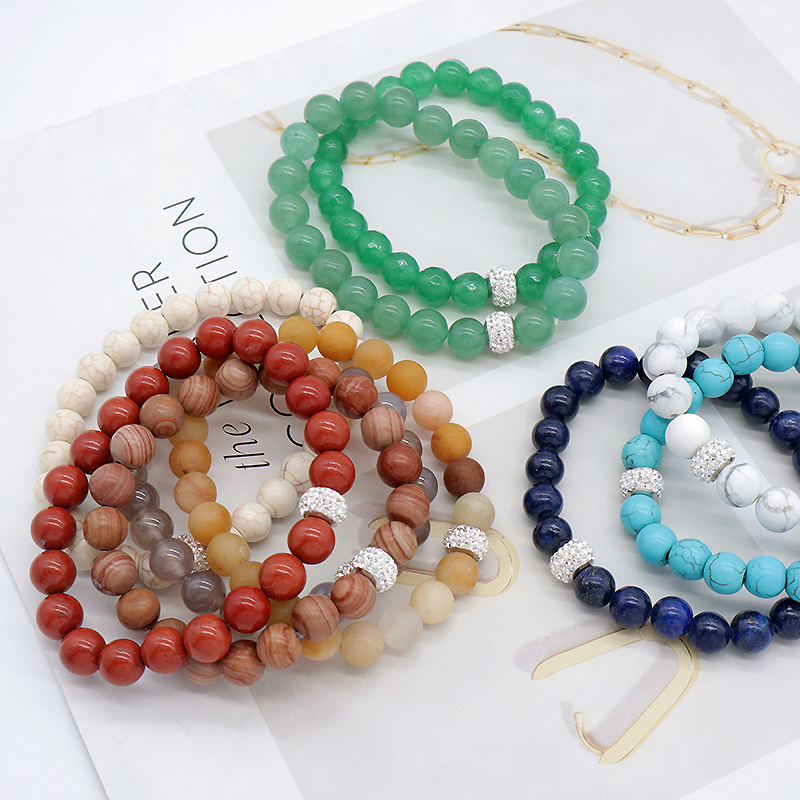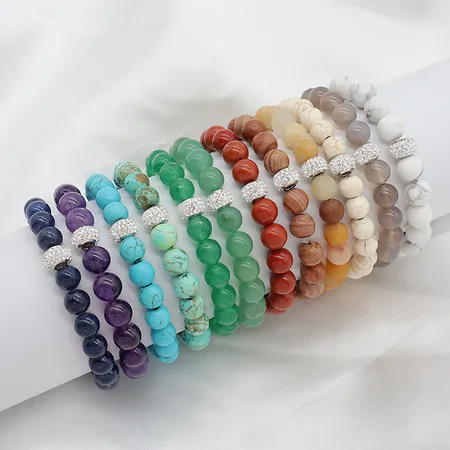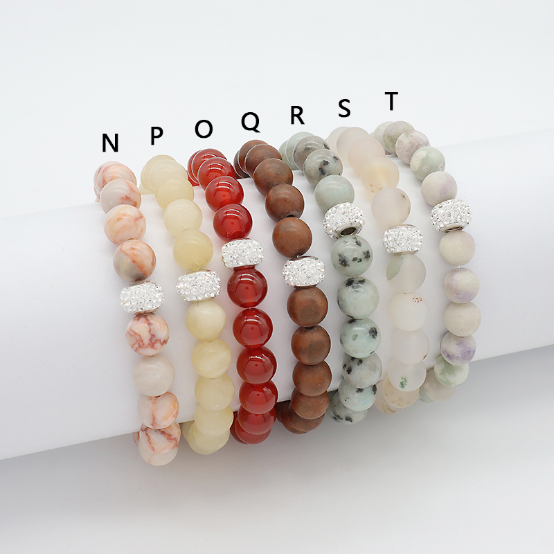 Handmade CZ 925 Sterling Silver Charm Natural Stone Bead Bracelet