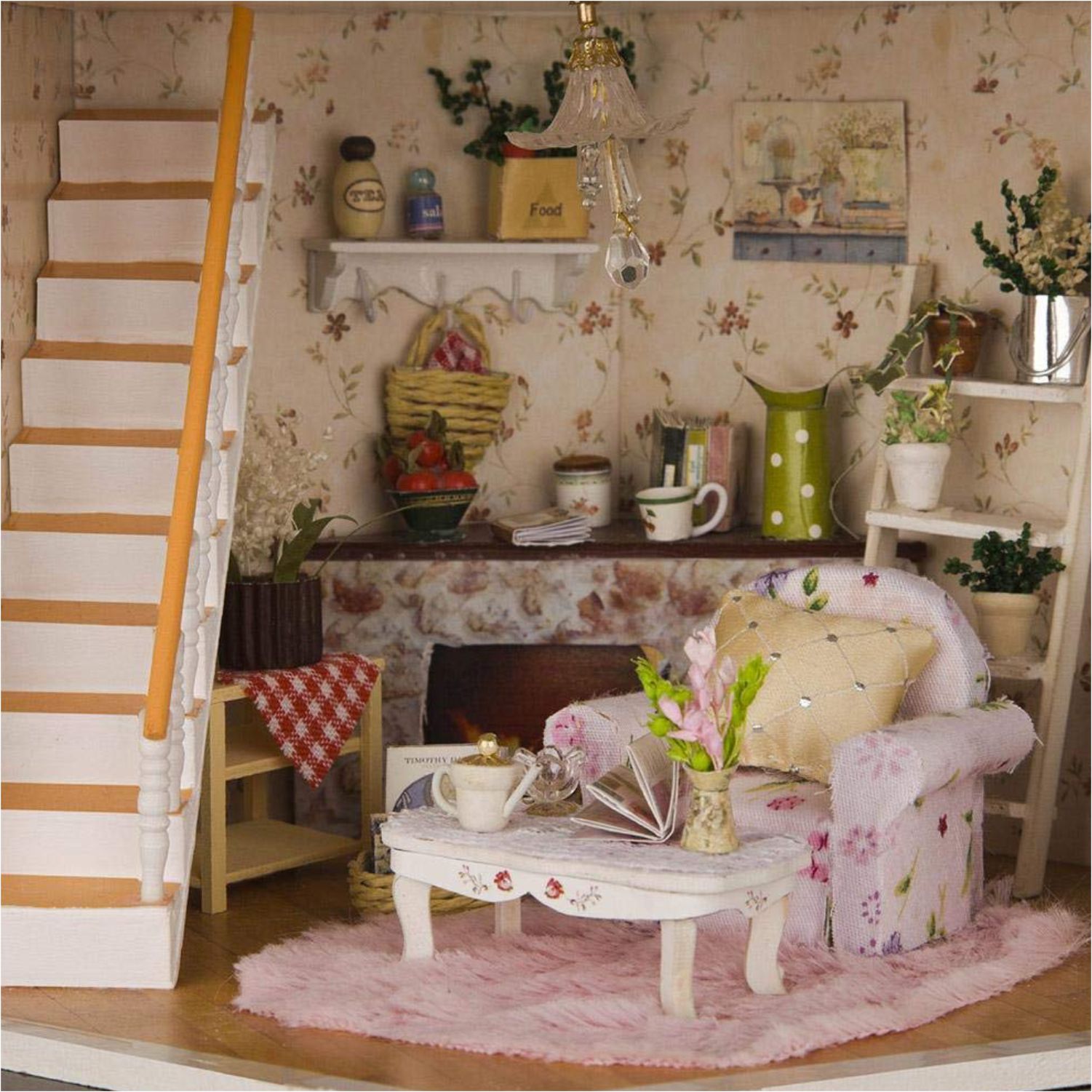 In the assembly process, it can improve expression ability, stimulate the development of organs, coordinate physical functions and practice social activities. DIY Wooden Miniature Dollhouse Handmade Assembly Model House for Kids Boys Girls 3D Wooden Model Toy Kit Set Furniture Kit Mini Green House.